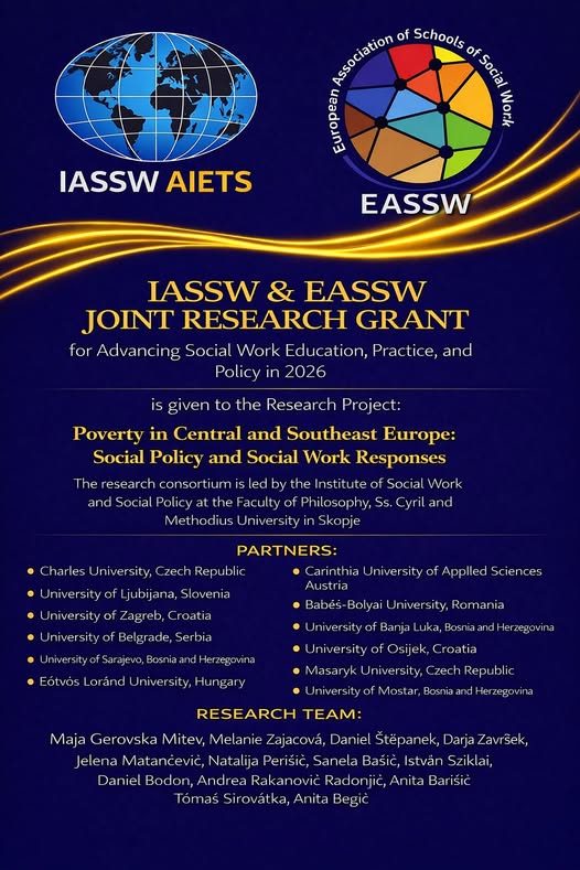 The International Association of Schools of Social Work and the European Association of Schools of Social Work have awarded the Joint Research Grant 2026 to a truly meaningful and timely project:
