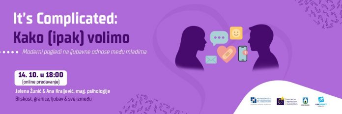 Online predavanje pod nazivom “It’s Complicated: Kako (ipak) volimo” održat će se u utorak, 14.10.2025. u 18:00 h putem Zoom platforme.