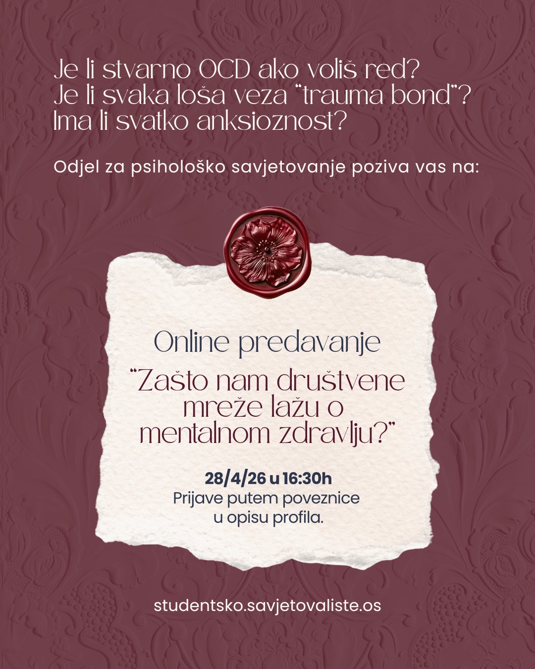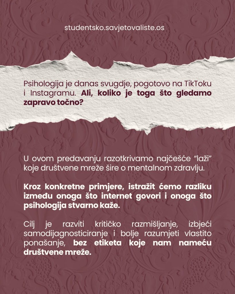 Ovaj mjesec organiziramo online predavanje „Zašto nam društvene mreže lažu o mentalnom zdravlju?“.