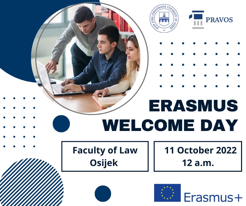 U utorak 11. listopada 2022. u 12 sati u Vijećnici Pravnog fakulteta održati će se ERASMUS WELCOME DAY