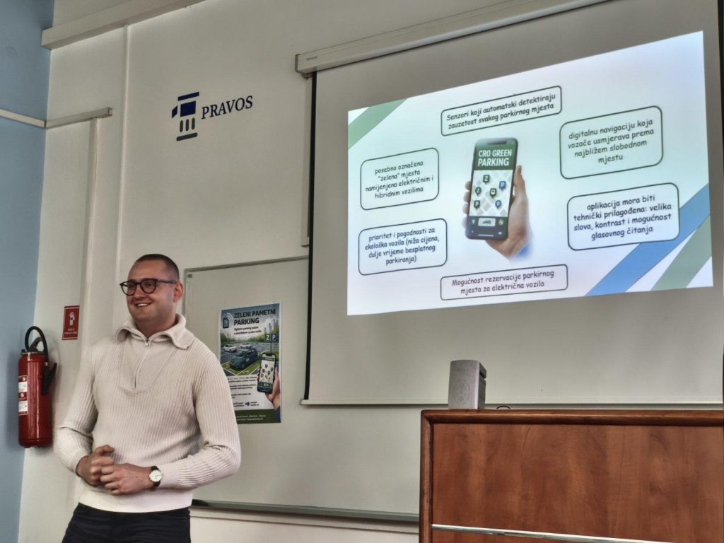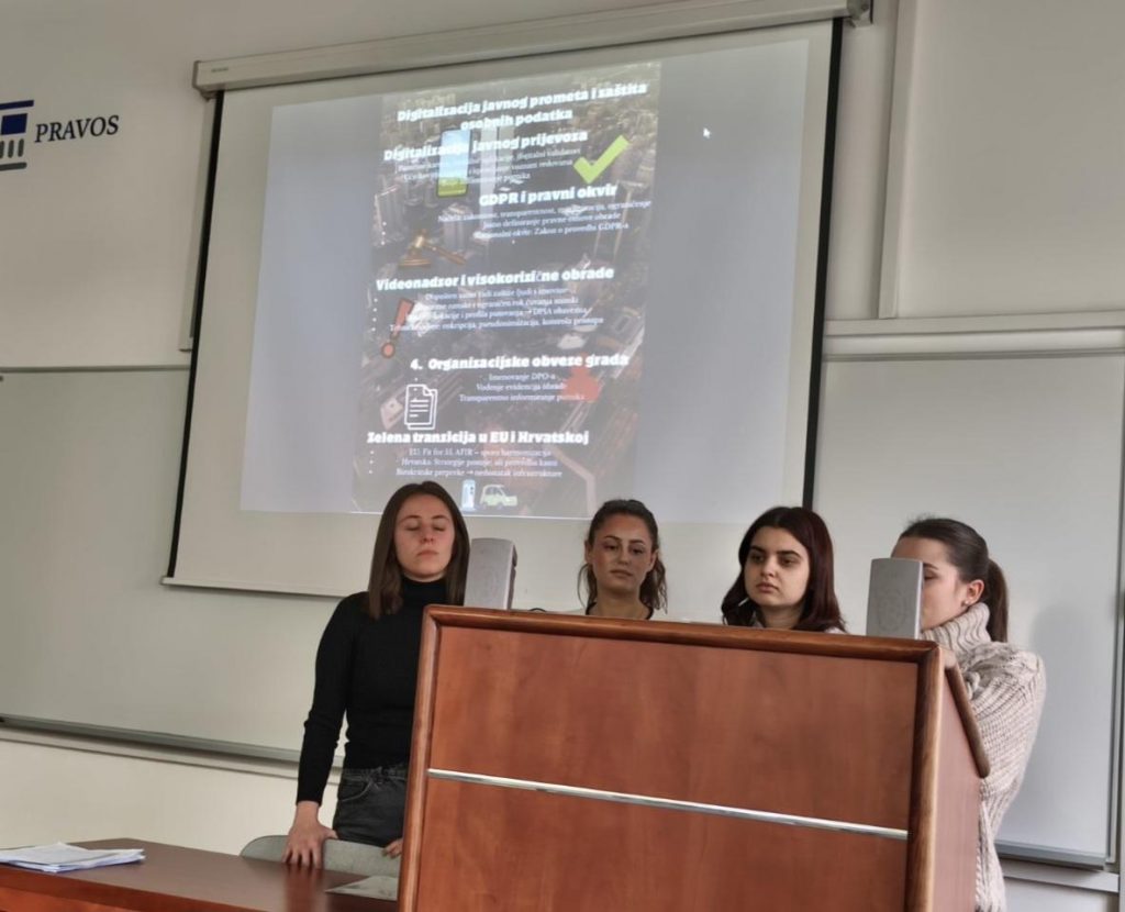 During the workshop, students had the opportunity to become acquainted with the strategic framework of green and digital transition in urban environments, key European Union directives and national regulatory legislation, practical examples from Croatian and international practice, as well as technological innovations in mobility.